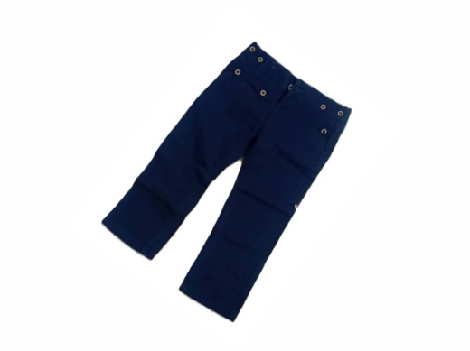 These sophisticated navy trousers bring a touch of nautical-inspired elegance to any wardrobe. Designed with a flattering high waist, they feature a unique double-row of decorative gold-toned buttons along the front, adding a chic and polished military-style accent. The rich navy fabric offers a refined look, while the tailored fit ensures comfort and versatility.